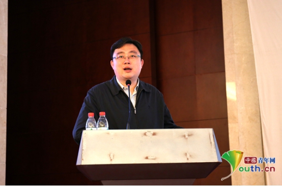 中央网信办网络新闻信息传播局副局长陈云峰做报告。中国青年网特约记者马慧娟摄