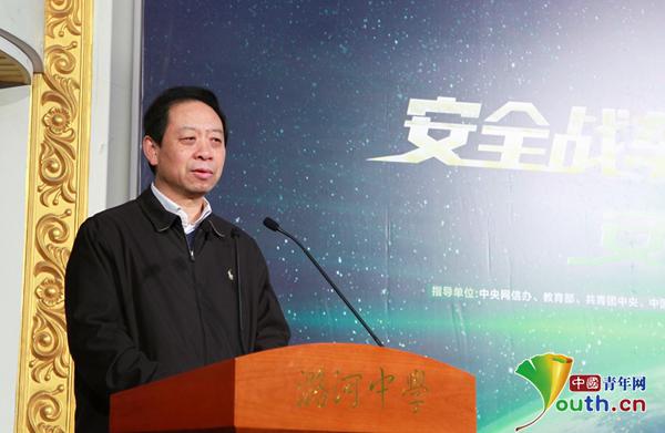 共青团中央网络影视中心党组书记金东介绍“赢在未来 青年之声·青少年网络安全中国行”专项行动。中国青年网记者 李延兵 摄
