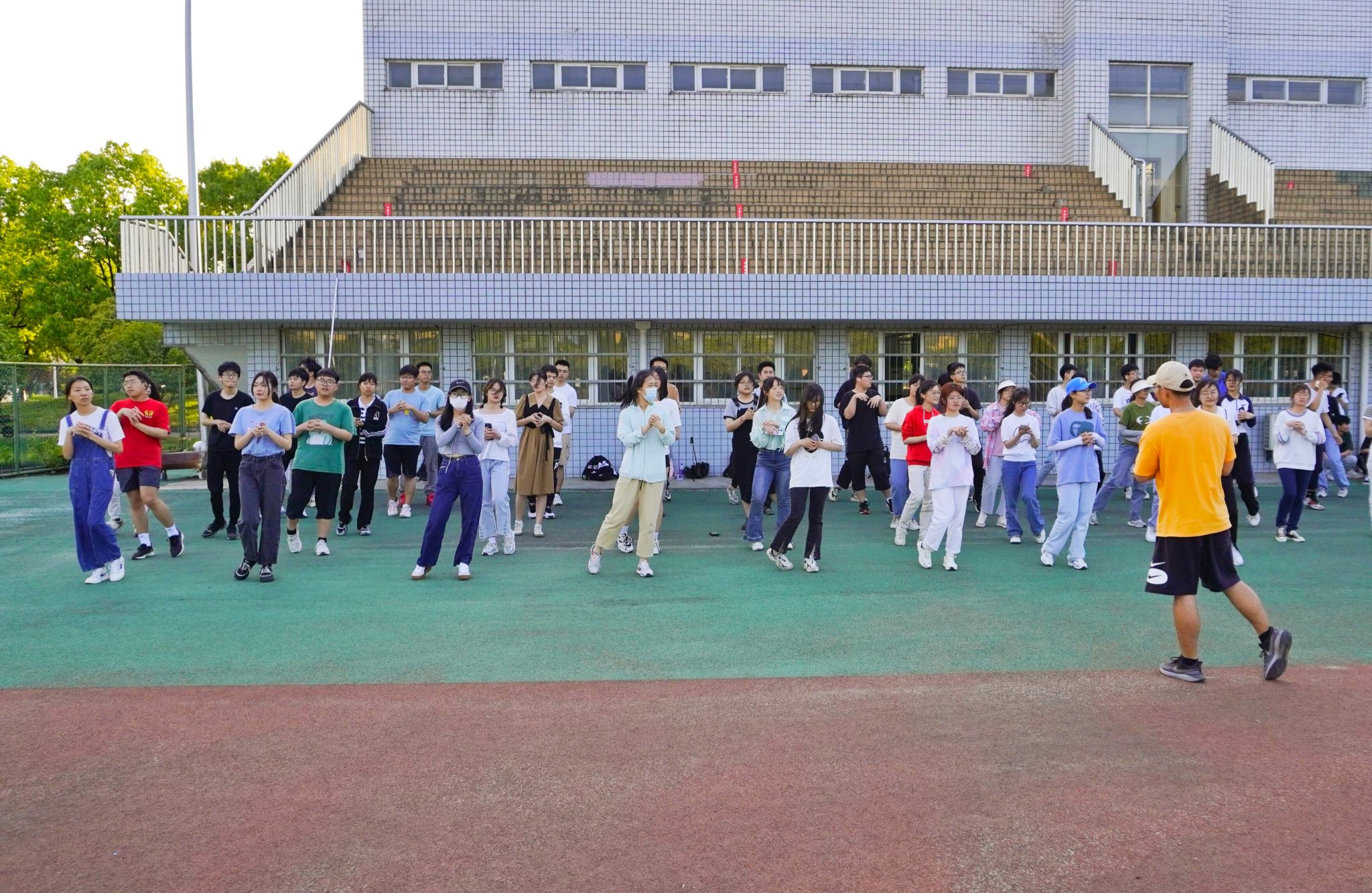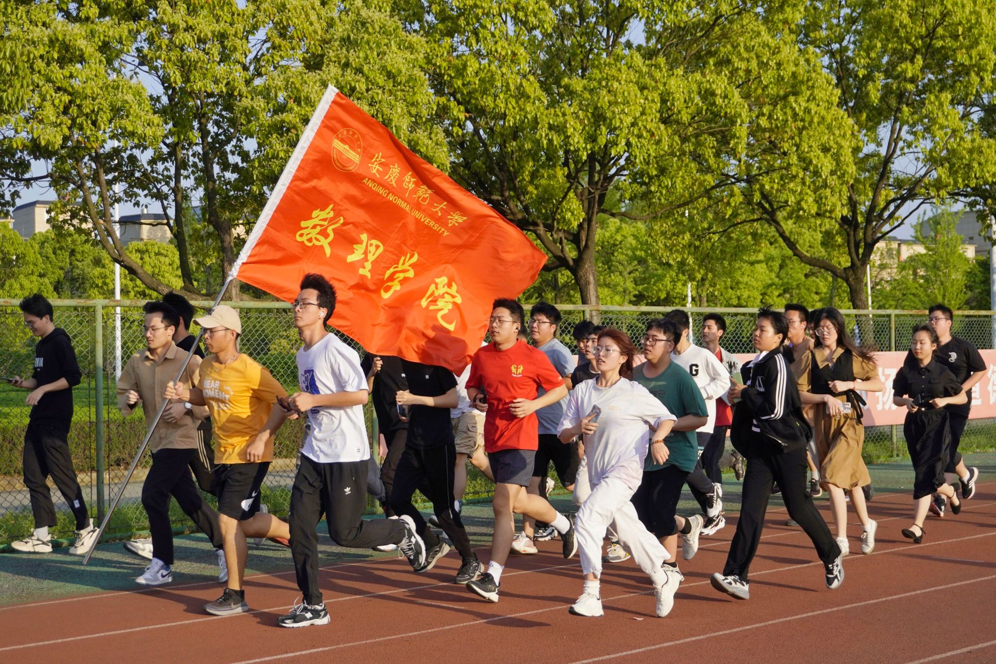 “大家跟着我做体转运动,两脚分开与肩同宽站立,两手屈臂握拳与肩同高……”下午5点,学生们在操场集合后,集中完成热身运动。物理学专业2021(4)班的周浩天作为旗手,肩扛学院旗帜领跑在前,学生们整队排列,跟随其后。他们步履轻盈,双臂一前一后地摆动着,双脚越迈越快,部分学生表示“四圈不过瘾”,继续围绕操场跑第五圈、第六圈。