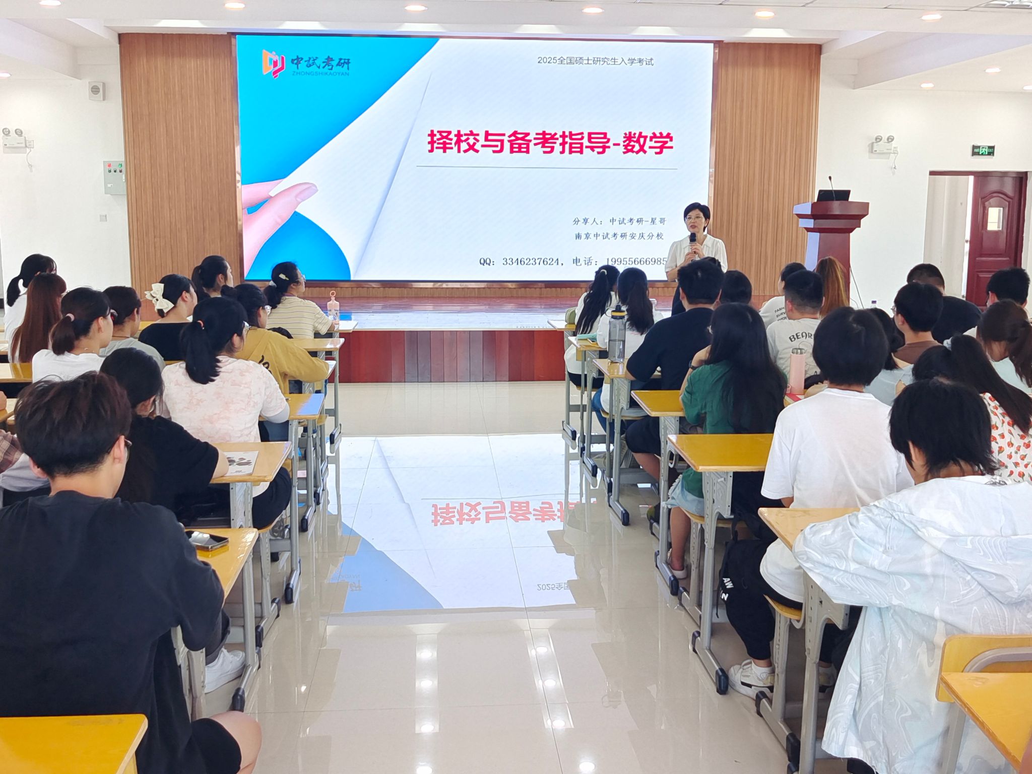 9月6日,太阳成集团tyc234cc在数理楼401报告厅举办数学专业考研公益讲座。学院邀请中试考研资深专业老师开展考研择校与备考指导,学院党委副书记彭芳珍、辅导员老师和数学与应用数学专业近200名学生参会。