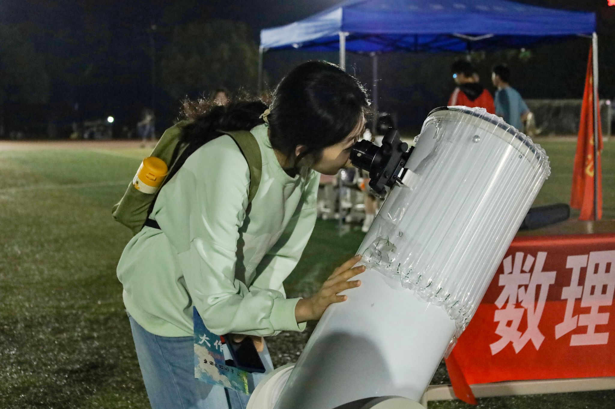 身着运动装、手持集章卡,随着活动开始的号令响起,学生们踏上跑道,开始了运动之旅。从“东方红一号”的成功发射,到载人航天工程的辉煌成就,再到嫦娥探月以及“天问”探火等深空探测的壮丽征程,学生们每经过一处“打卡”点,就盖上象征航天精神的印章。夜跑后学生通过天文仪器对天文现象进行观测,他们共同仰望星空,体验浩瀚宇宙的无穷魅力。