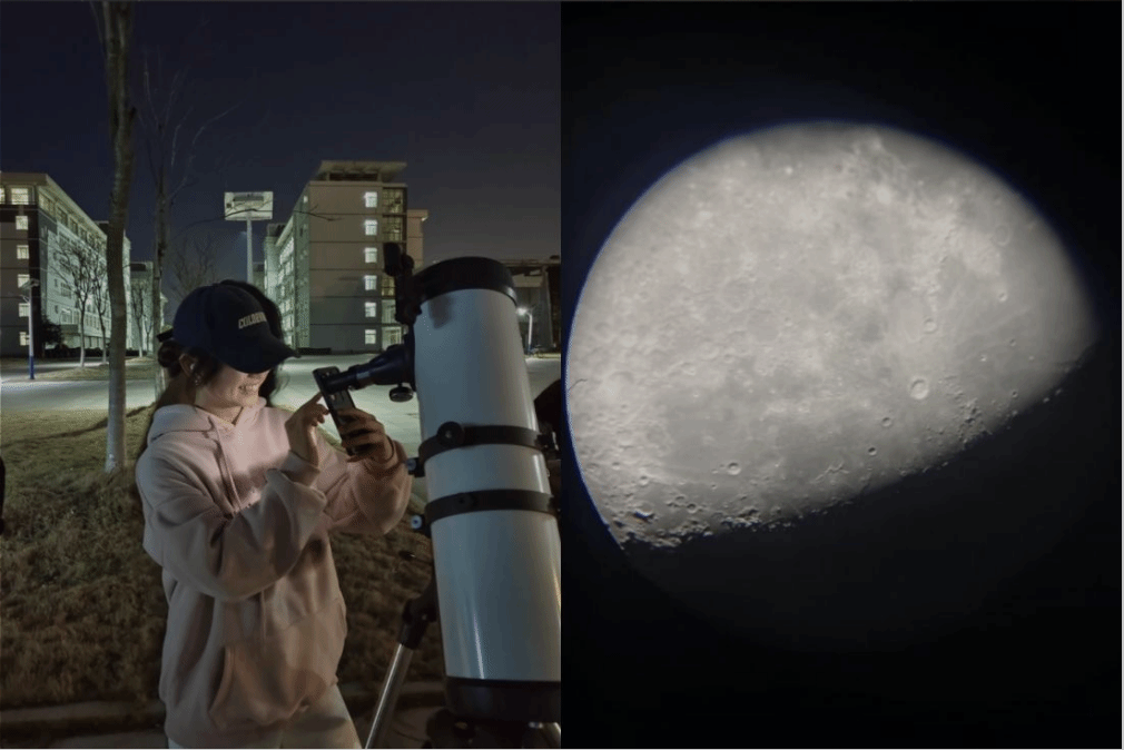 美丽的校园上空,星辰点点,同学们通过专业的天文望远镜欣赏美丽的夜空,观察遥远的星系以及若隐若现的行星光环。现场还设有天文模型展区和游戏场地。大学生天文爱好者协会的成员们用通俗易懂的语言,向大家介绍了各种微缩模型的功能与特性,以及人类探索宇宙的历史。而投球游戏的设计,更让参与者们对太阳系的八大行星有了进一步的了解。在月球大模型前,同学们不禁感叹,纷纷驻足合影。参与活动的同学表示,通过这样的观测活动,他们不仅增长了知识,更加深了对宇宙无限奥秘的敬畏和向往之情。