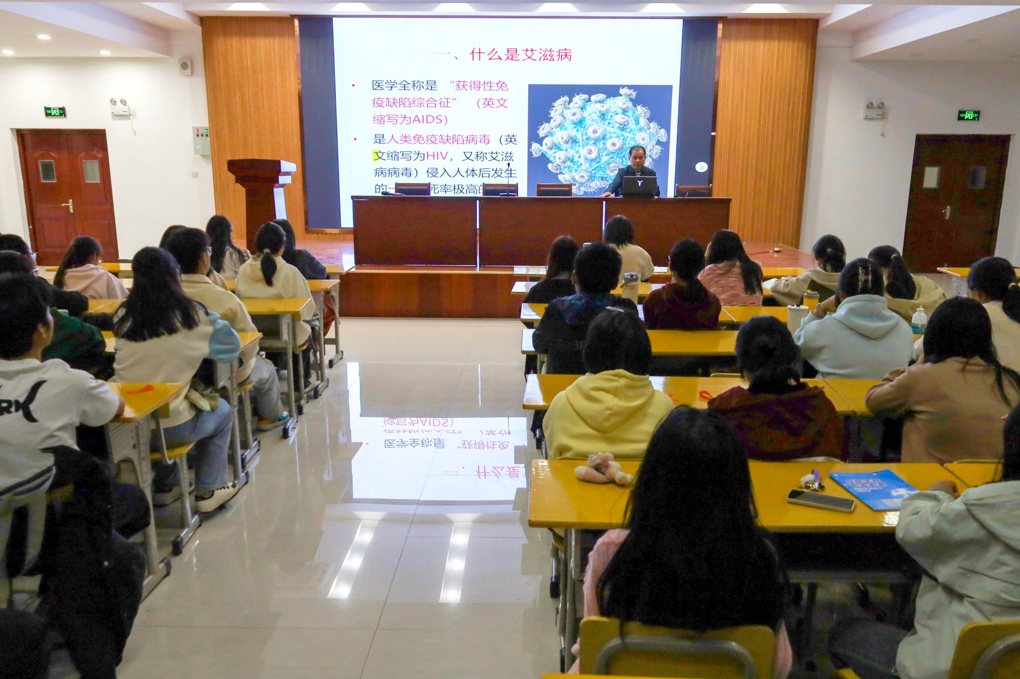 近日,太阳成集团tyc234cc联合校医院成功举办了第四届艾滋病防治知识讲座,来自2023级不同专业和班级的600余名新生分场次聆听了讲座。