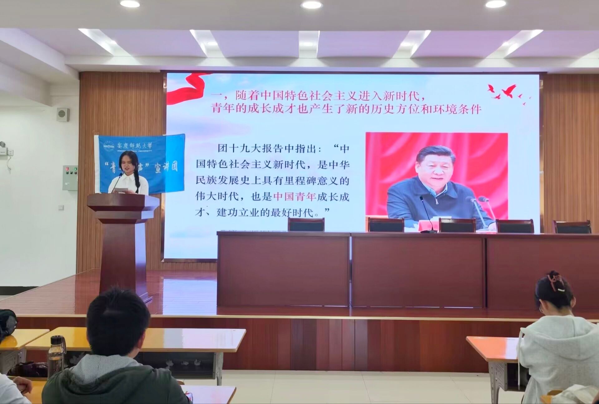 会上,宣讲团成员李安琪围绕“新时代青年的使命和担当是什么?”展开讲解。她用内容丰富的幻灯片,热情激昂的语言,深刻告诉同学们:中国青年要坚定信念,坚守伟大理想;要甘于奉献,担当历史责任;要永久奋斗,勇立时代潮头。“新时代青年为什么要肩负使命与担当?”宣讲团成员庞雨婷用典型的人物事例和丰富多彩的内容,让同学们了解到:随着中国特色社会主义进入新时代,青年的成长成才产生了新的历史方位和环境条件;新时代广大青年肩负着推动实现民族伟大复兴的使命与担当;担当时代责任是青春中最靓丽的颜色,青春时代要有奋斗和担当。