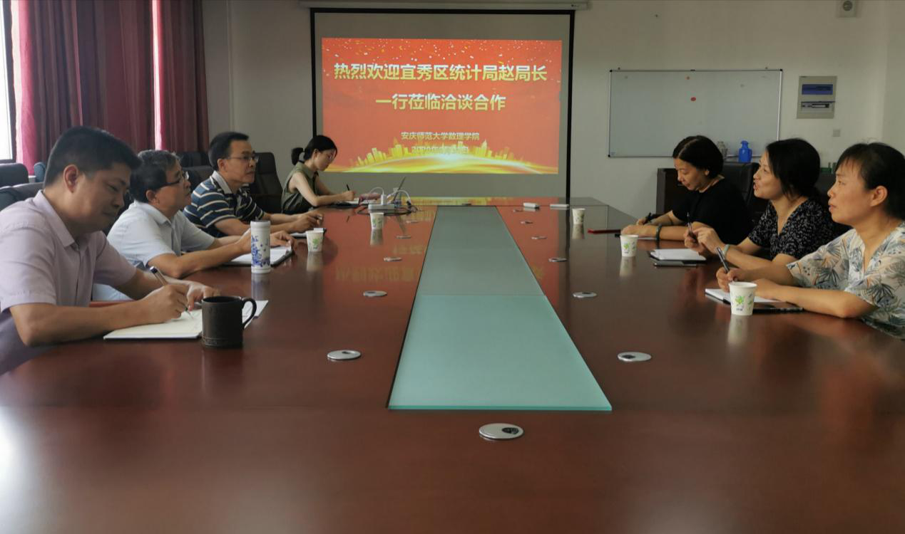 8月31日上午,宜秀区统计局局长赵丽萍等一行来我院,商谈产学研合作事宜。宾主双方围绕第七次全国人口普查工作的合作开展,进行了深入交流和探讨。党委书记钟金标主持座谈会。学院副院长张海、党委副书记何骏、统计系主任胡学平、党委秘书张夏彧参加座谈。
