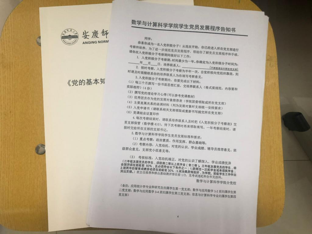 我院历来高度重视入党积极分子培训工作,会前给每位入党积极分子发放了《数学与计算科学学院学生党员发展程序告知书》、学习笔记和课程安排表,实行签名和请假制度,确保党课教育培训求得实效。