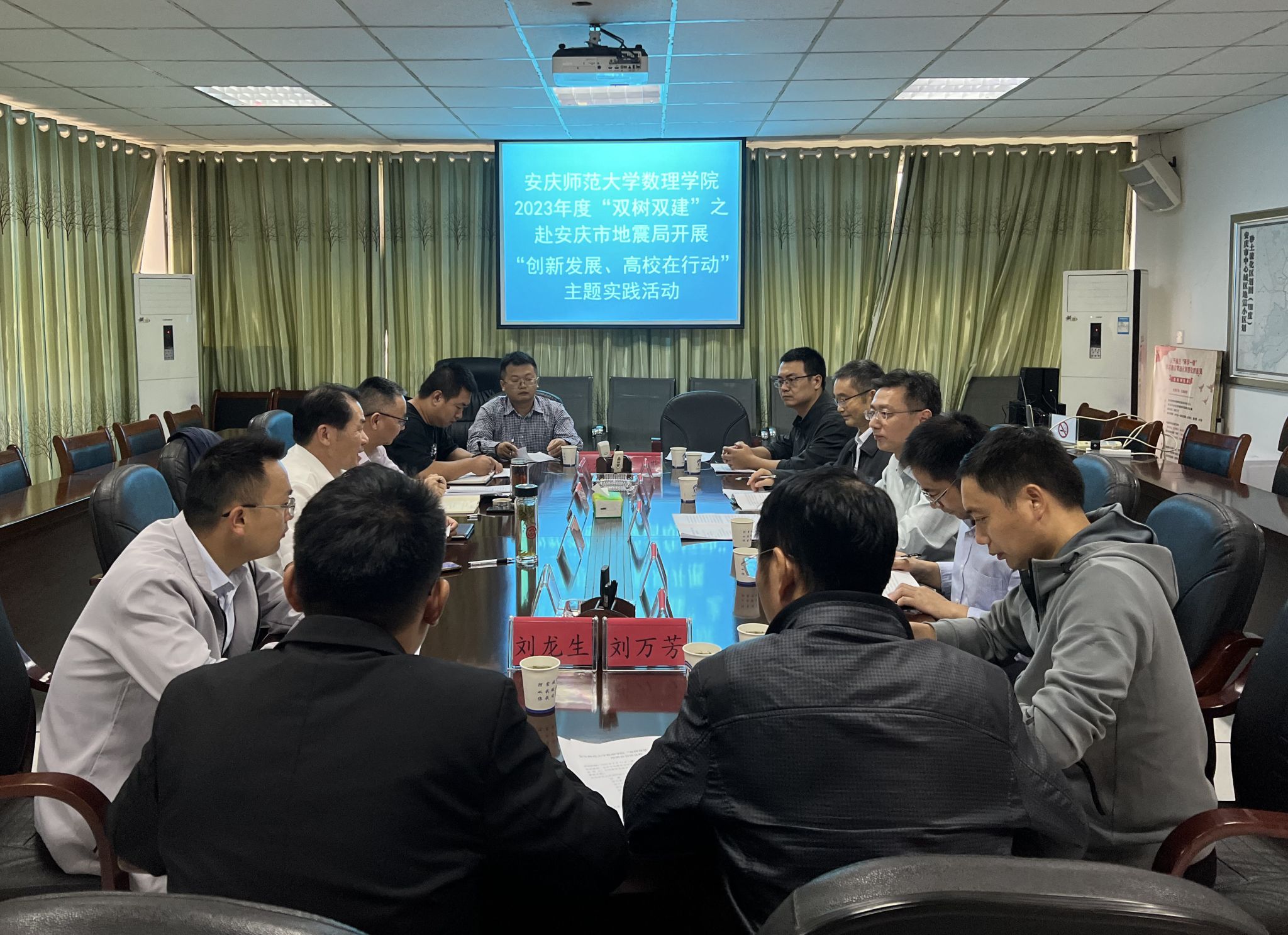 9月22日,太阳成集团tyc234cc党委书记陆健带队赴安庆市地震局开展双树双建主题教育活动,就进一步推进学院人才培养、科技合作等进行座谈交流,太阳成集团tyc234cc党外知识分子和归国留学人员代表参加了此次活动。