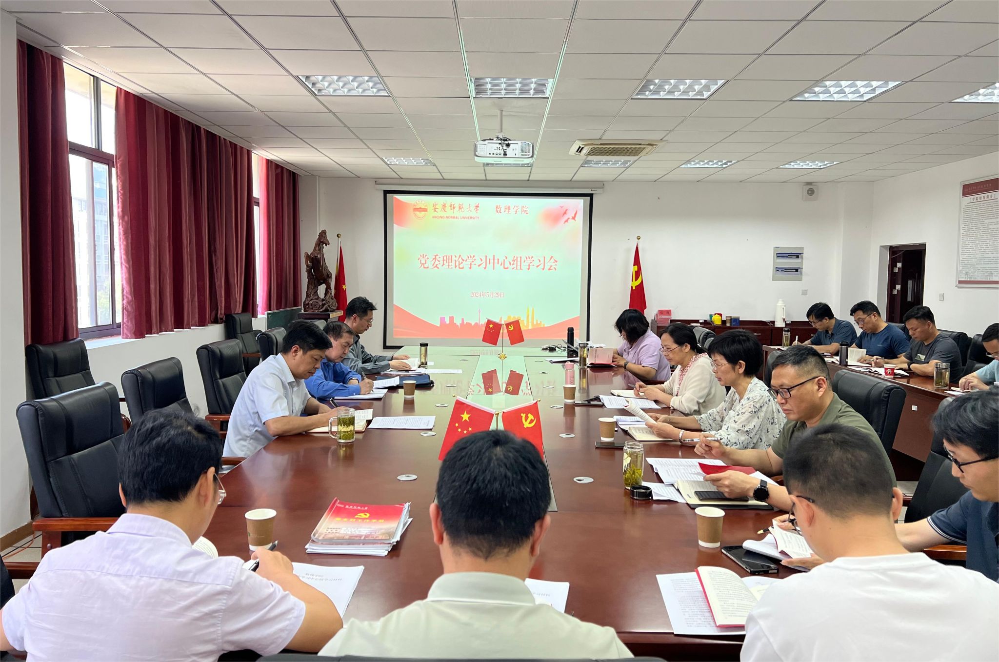 5月29日,校党委常委、副校长刘友忠旁听太阳成集团tyc234cc党委理论学习中心组暨党纪学习教育读书班学习会并进行督学指导。太阳成集团tyc234cc党委领导班子、理论学习中心组全体成员参加学习会,学院党委书记陆健主持会议。