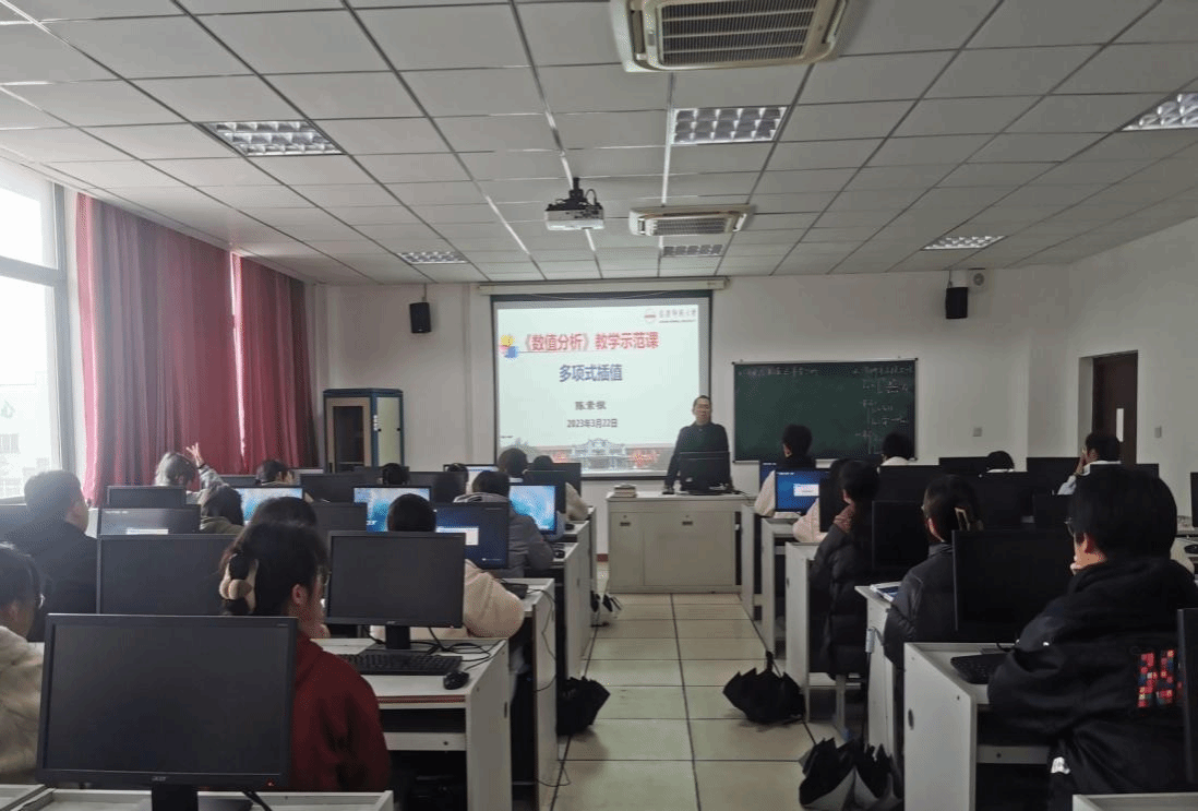 3月22日,我院陈素根教授在I楼304开展了《数值分析》课程本科教学示范课活动,学院相关专业老师和2021级数学与应用数学专业部分学生参加了教学观摩,授课内容为“多项式插值”。