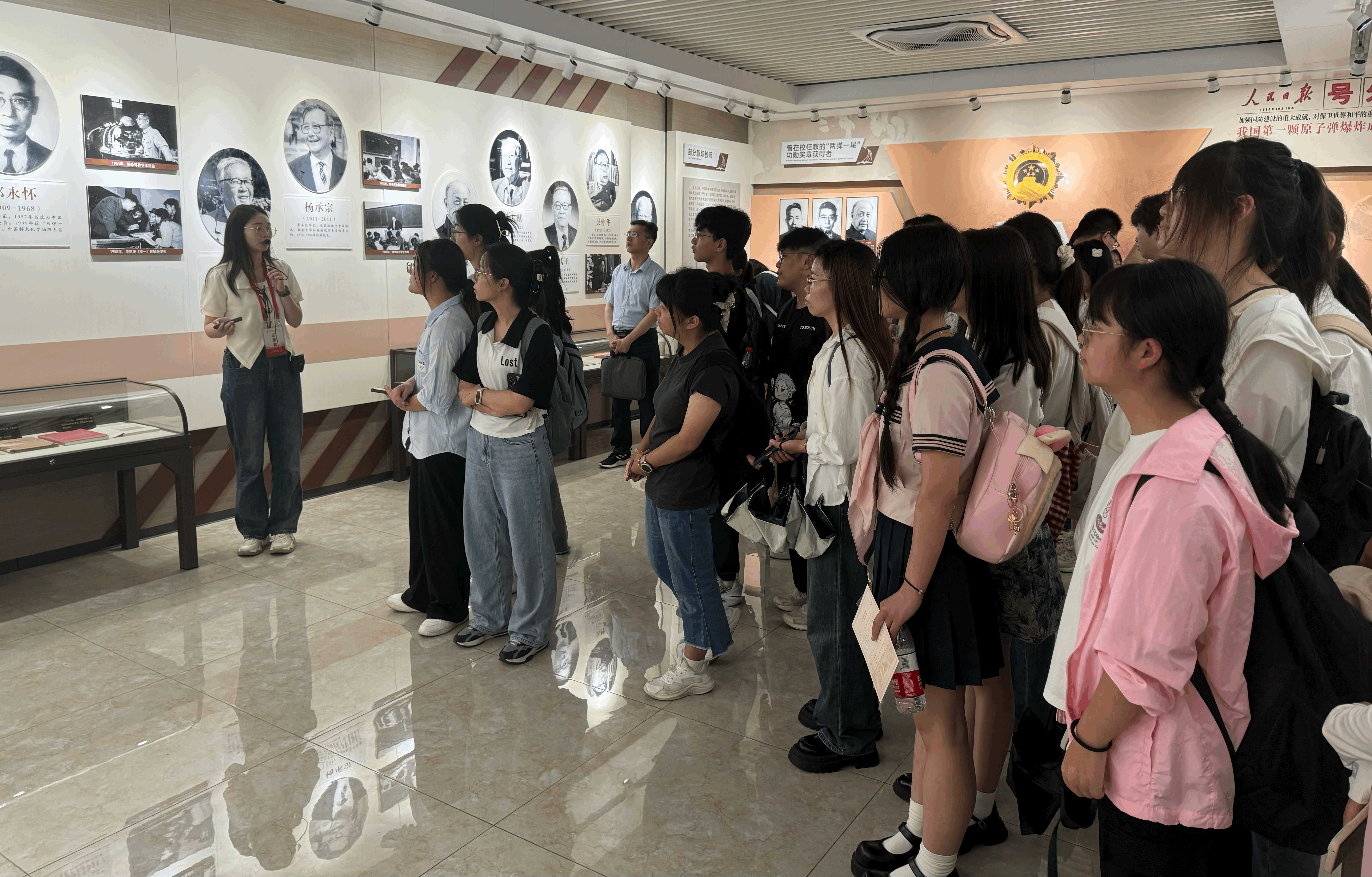 邓稼先班一行先后参观了中科大博物馆和校史馆。中科大的志愿者同学们逐一为我院师生进行了详细的讲解。在博物馆,同学们深切感受到中国传统文化和艺术的美,以及中国古代的科学和工艺技术的精湛。在校史馆,同学在志愿者的引导下,沉浸在中科大的发展历史长河中,被先辈们为中国之崛起而艰苦奋斗、不畏牺牲的精神深深感动,被科学家们所取得的辉煌成就感到震撼。