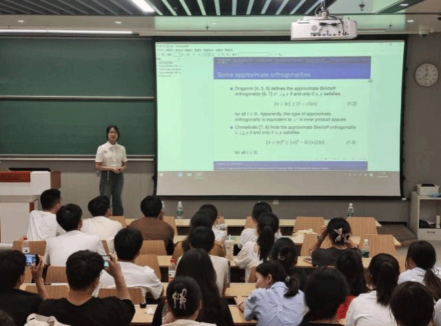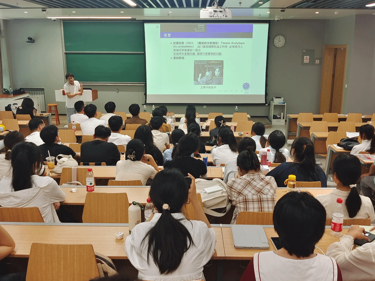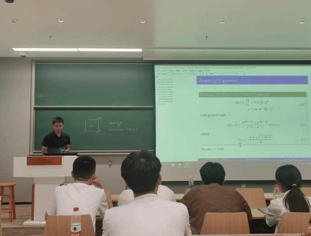 在学术研讨环节,刘党政给现场的同学作了“非随机数学中的随机结构”的学术报告,同学们表示受益匪浅,从随机结构的不确定性中领悟到了其独特的数学魅力;我院“邓稼先班”学生汪冉冉和中科大“华罗庚班”学生侯相龙分别作了题为“Integral approximation orthogonality with Hermite–Hadamard form”、“Adaptive Boosting Methods for the Machine Learning Based PDE Solver”的学术分享,到会的同学进行了热烈地交流。