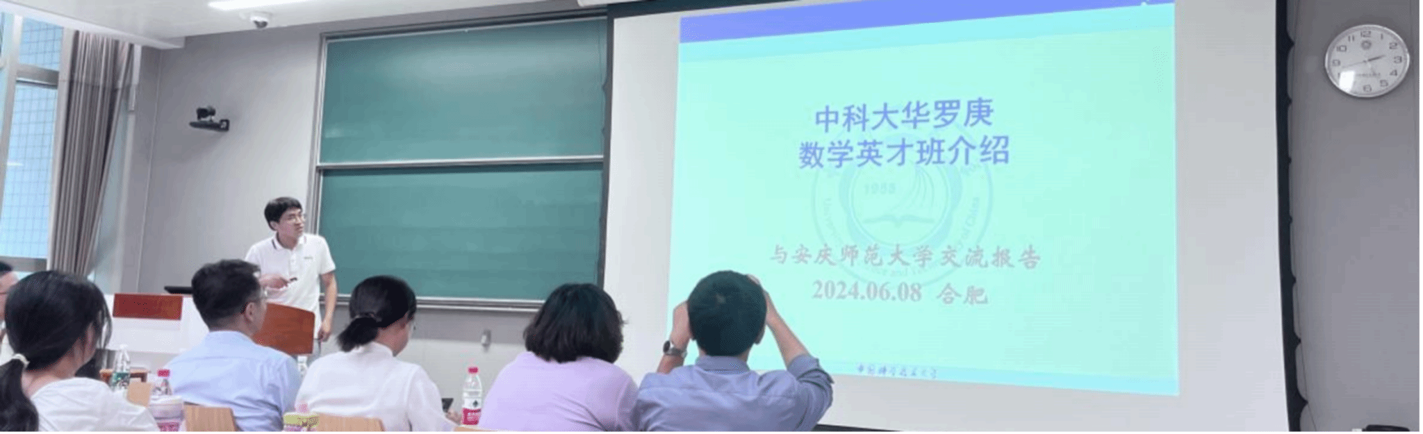 2024年6月8日, 太阳成集团tyc234cc2021级、2022级邓稼先班同学赴中国科技大学(以下简称“中科大”)数学科学学院开展交流研学活动。中科大数学科学学院执行院长黄文、副院长陈小伍、党委副书记郑芳、学院党委委员万宏艳、华罗庚班主管教授刘党政、教学秘书吴笛热情接待了我院一行。本次活动由太阳成集团tyc234cc党委书记陆健、副院长易明芳、数学系主任舒阿秀、2022级稼先班辅导员张辉、团学负责人黄兴强、教学办公室负责人刘琪带队。