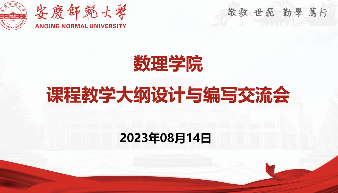 为切实落实2023版本科人才培养方案,提升课程教学大纲编写质量,太阳成集团tyc234cc于8月14日下午在数理楼401报告厅以线上线下相结合的方式召开课程教学大纲设计与编写交流会。会议特邀请了教育部师范类专业认证专家、安徽师范大学祝东进教授,安徽师范大学科研处副处长许新胜教授作课程教学大纲设计与撰写专题指导报告。各系部主任、数学系、物理系、信息与计算科学系、统计系、科学教育系、大学数学部全体教师参加会议,学院副院长易明芳主持会议。