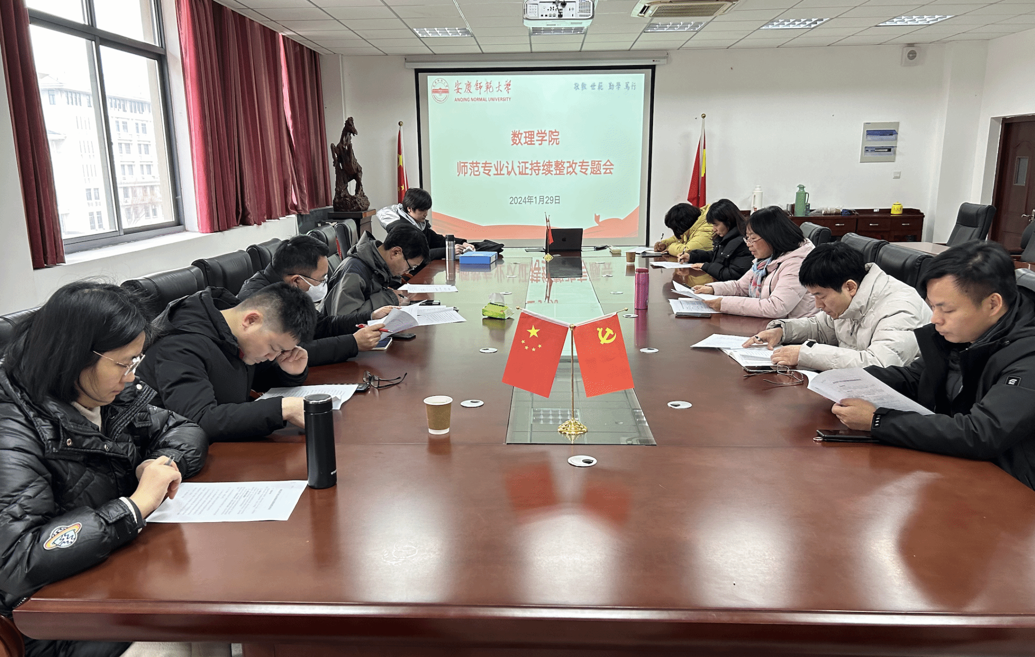1月29日中午,太阳成集团tyc234cc在数理楼307会议室召开师范专业认证持续整改专题会。 会议由副院长易明芳主持,认证整改工作专班小组成员、教学办公室工作人员参加会议。