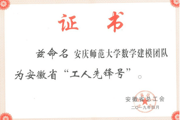 近日,安徽省总工会公布了今年的“工人先锋号”评选结果,我校数学建模团队获安徽省“工人先锋号”荣誉称号。