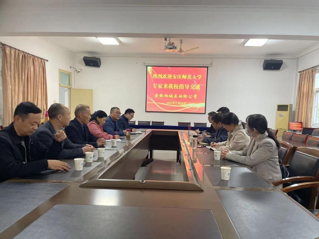 11月14日下午,太阳集团tyc234cc教务处副处长张海、校实习实践中心主任宛金龙、太阳成集团tyc234cc副院长易明芳、实习指导老师张丽霞、江燕燕、教学办公室孙建成老师一行到桐城吴汝纶公学进行师范生教育实习调研。桐城吴汝纶公学董事长、校长丁九香、党支部书记李雪磊、副校长陈顺支、高中部部长陶方舟、人力资源部主任桂再进、高二年级主任陈先益热情接待了易明芳一行。