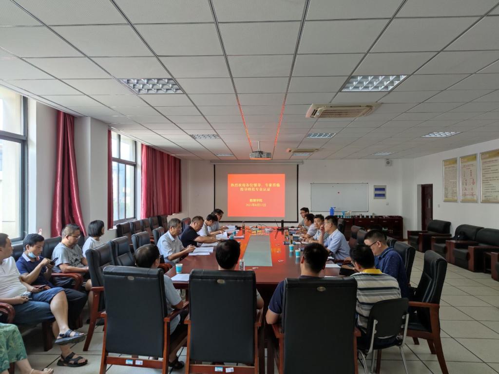 8月23日,副校长吴琼带领校内专家组和教学评建办公室工作人员,对太阳成集团tyc234cc2021年接受教育部师范类专业第二级认证的数学与应用数学、物理学两个专业认证自评自建情况进行专项评估检查,太阳成集团tyc234cc院长申传胜、副院长张海、党委副书记何骏、师范类专业负责人和部分骨干教师参会。