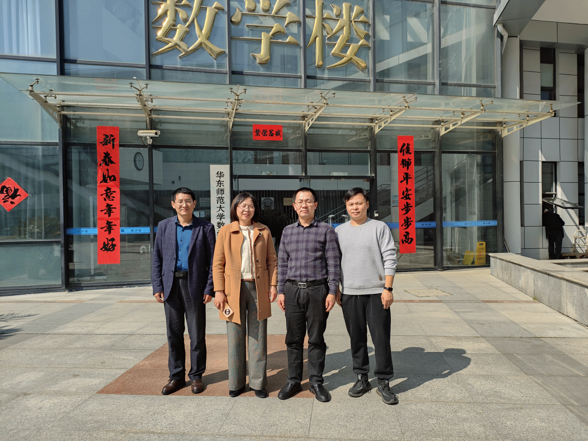 为推进我院数学与应用数学国家一流专业建设,提升人才培养质量,科学修订2023版人才培养方案,3月10日,副院长易明芳、数学系主任张辉、院学术委员会主任陈素根、代数与几何教研室主任陈文兵一行4人赴华东师范大学数学科学学院进行调研。华东师范大学数学科学学院副院长程涛、教学委员会主任叶东、数学教育系主任吴颖康等热情接待了易明芳一行。