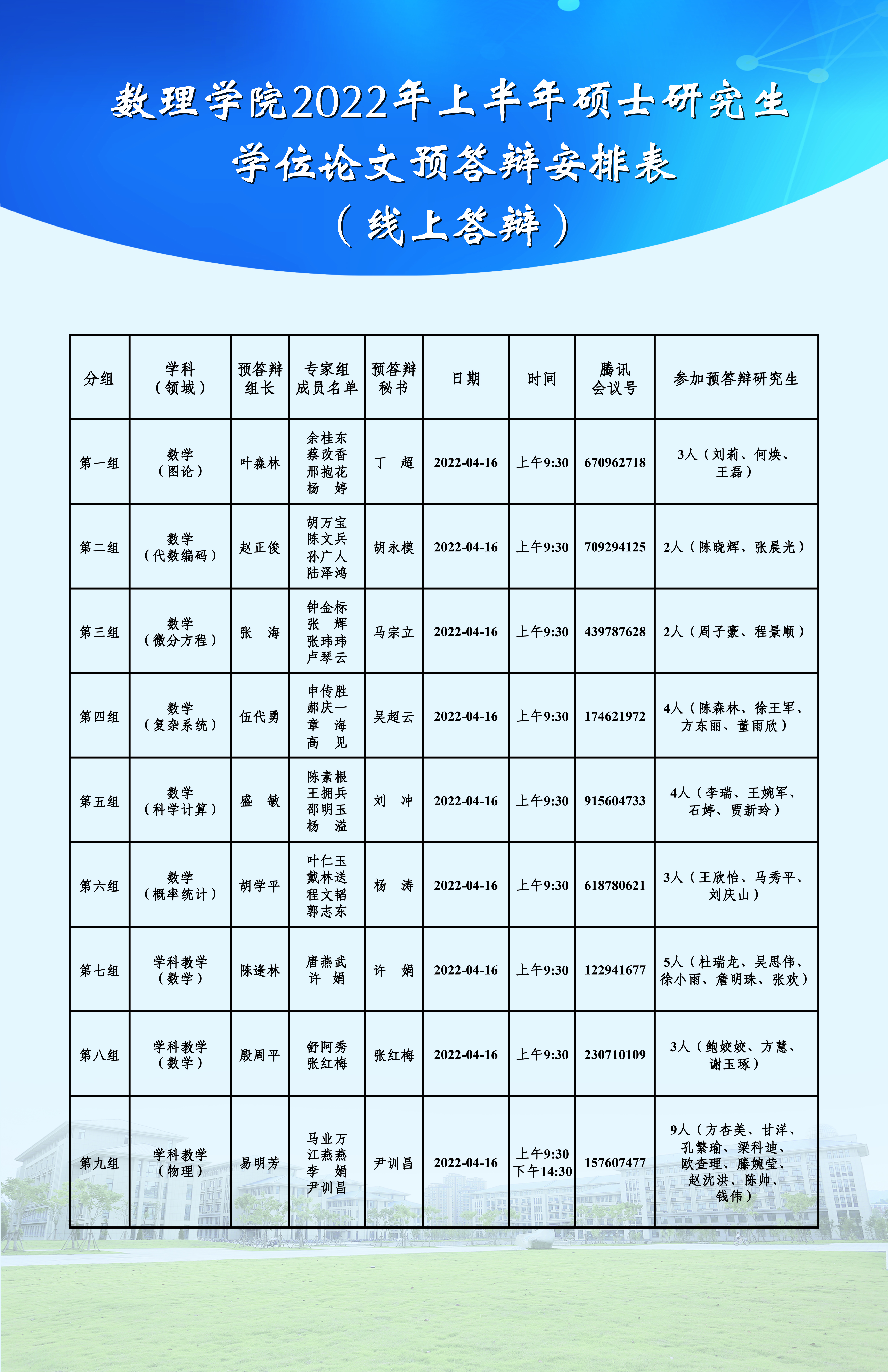太阳成集团tyc234cc2022年上半年硕士研究生学位论文预答辩安排表