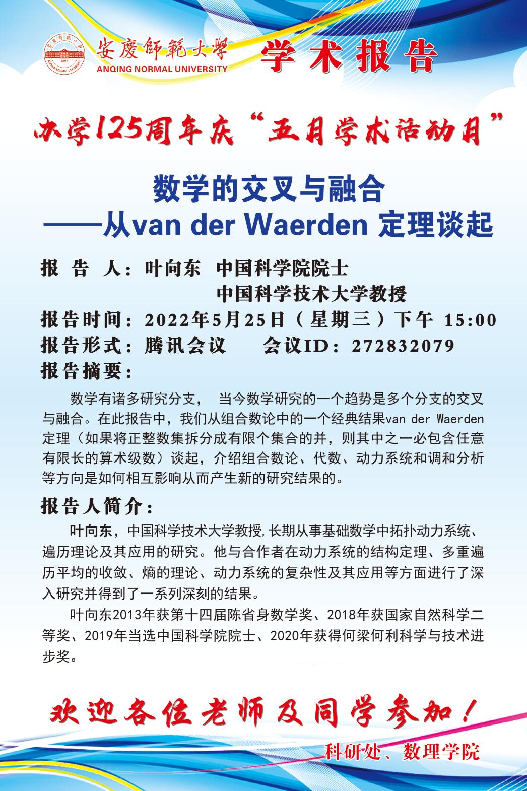 中国科学院院士叶向东教授线上学术报告通知2022006
