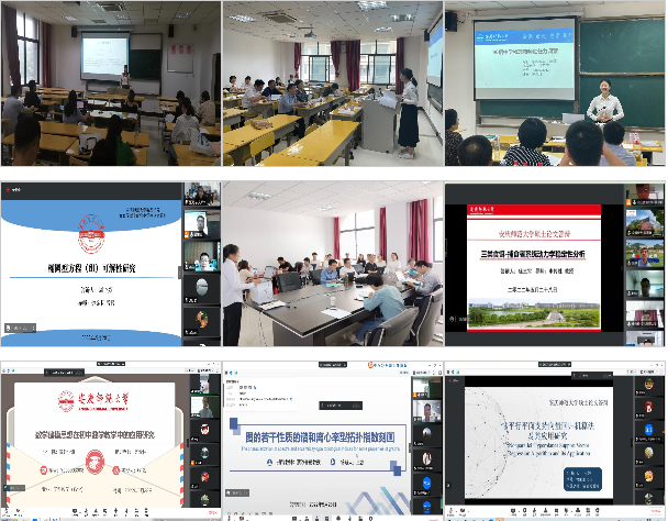 5月28日,太阳成集团tyc234cc数学一级学科硕士点、学科教学(数学)和学科教学(物理)专业学位点分别举行2022届硕士学位论文答辩会。太阳成集团tyc234cc各硕士点特邀中国科学技术大学王毅教授,合肥工业大学朱士信教授,安徽大学范益政教授,安徽师范大学任永教授,华中师范大学李炜教授,安庆一中正高级教师陈贤清,安庆二中正高级教师叶玉琴,安庆十中高级教师祝小松,安庆石化一中人民路校区高级教师徐文中分别担任各组答辩委员会主席,太阳成集团tyc234cc各硕士点导师担任相应组别答辩委员会委员。太阳成集团tyc234cc2022届32名硕士研究生参加论文答辩,学院在读研究生和部分高年级本科生旁听、观摩了本次答辩会。