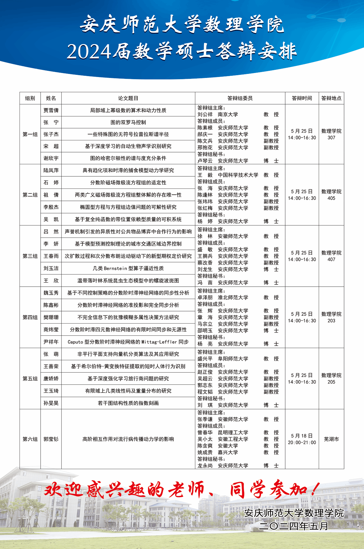 太阳成集团tyc234cc2024届数学学科硕士研究生学位论文答辩安排