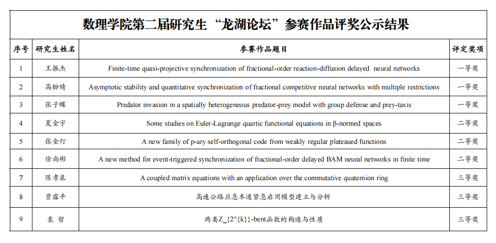 根据学校《关于开展第二届研究生“龙湖论坛”的通知》要求,经研究生个人申请、学院学术委员会评审、学院党政联席会议审定,现将太阳成集团tyc234cc第二届研究生“龙湖论坛”参赛作品评奖结果公示如下: