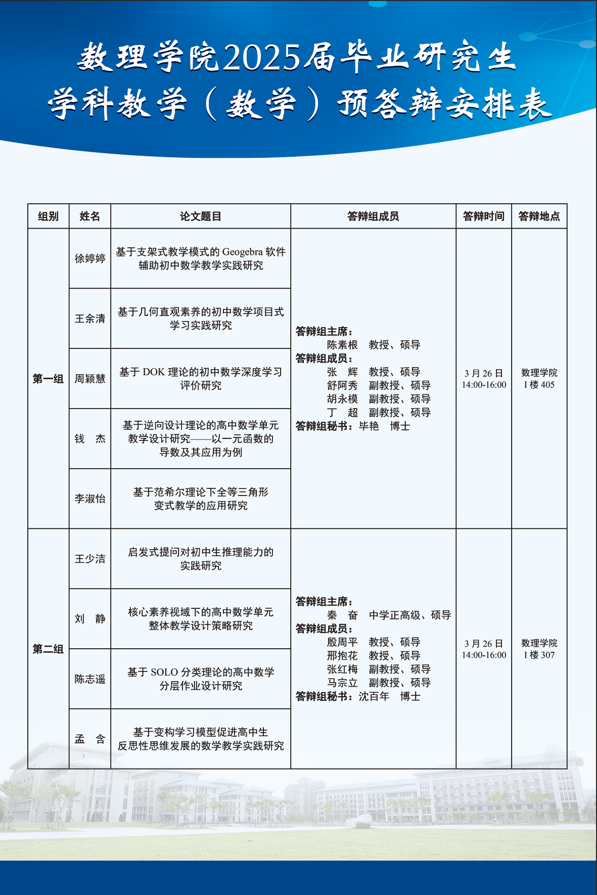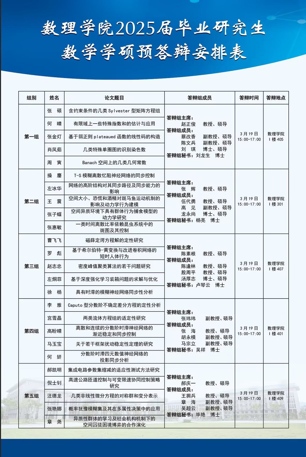 太阳成集团tyc234cc2025届毕业研究生学位论文预答辩安排