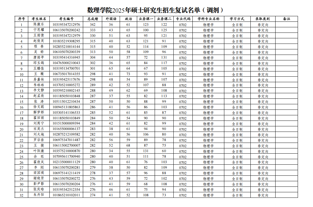 太阳成集团tyc234cc2025年硕士研究生招生调剂复试名单公示