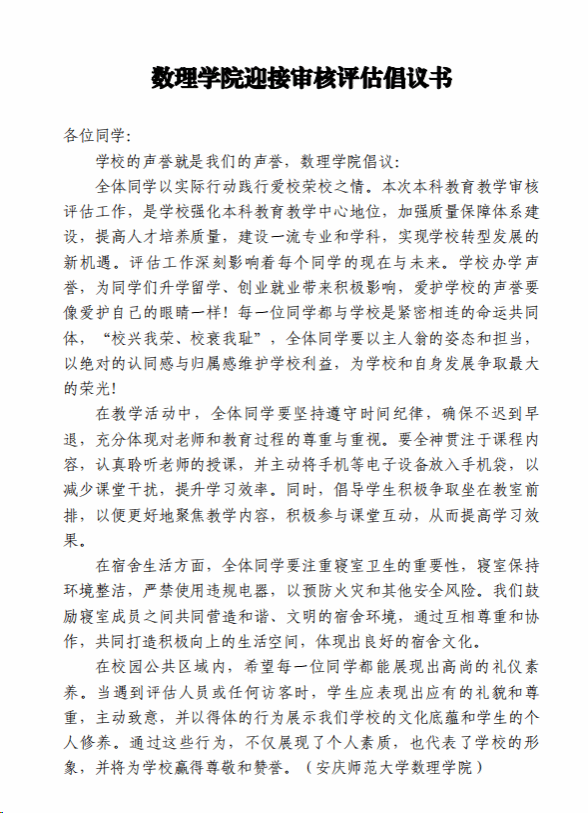 学院在学校本科教育教学审核评估工作期间通过各种活动形式充分动员和鼓励学院师生积极参与评估,引导全体学生齐心协力,振奋精神,以迎评为己任,以饱满的精神面貌迎接本次教育教学审核评估。(撰稿/摄影:秦晶晶 审核:彭芳珍)