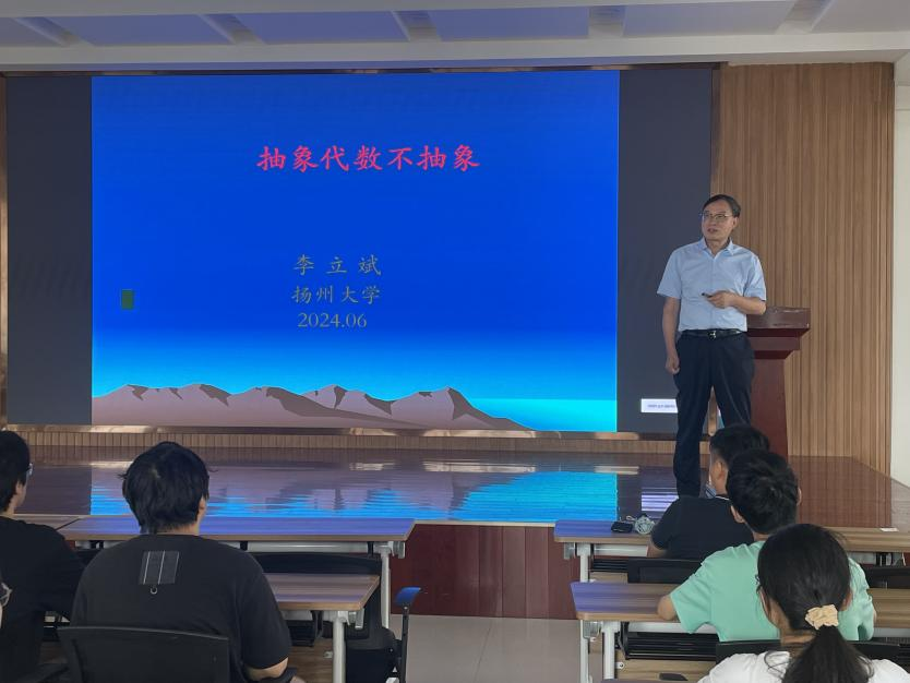 6月30日,太阳成集团tyc234cc在I401报告厅举办拔尖人才培养讲座。学院特邀扬州大学数学科学学院二级教授、博士生导师李立斌作题为“抽象代数不抽象”的报告,学院数学专业部分教师、辅导员和数学类稼先班学生近百人参加了报告会。