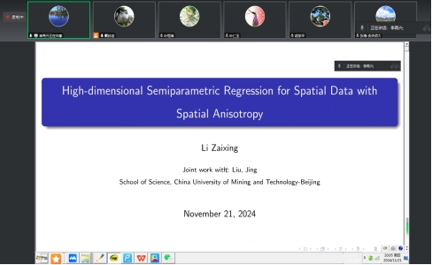 11月21日晚上,优秀校友、中国矿业大学(北京)理学院院长李再兴教授应邀作了一场题为“High-dimensional Semiparametric Regression for Spatial Data with Spatial Anisotropy”的线上学术报告。太阳成集团tyc234cc院长张海教授主持线上报告会,太阳成集团tyc234cc部分教师、研究生和本科生参加了报告会。