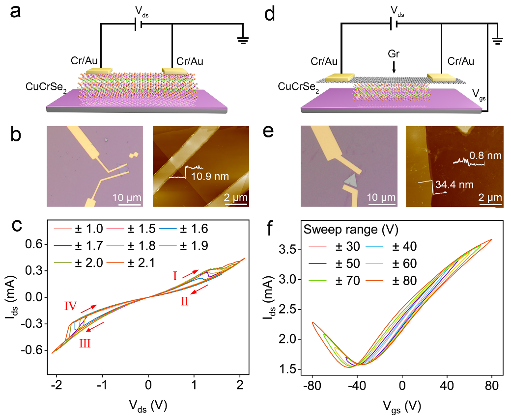 图5.基于CuCrSe2铁电器件的电学测量