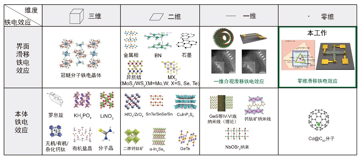 近日,北京理工大学物理学院郭耀课题组在《自然·通讯》发表了题目为《零维范德华界面铁电效应》的研究论文(论文链接:https://www.nature.com/articles/s41467-023-41045-8)。该工作打破了传统铁电效应的尺寸限制,首次以确切的实验证据和理论计算证实了极小尺度的零维固态铁电效应。该研究成果表明范德华界面滑移铁电效应在未来高密度信息存储具有重要优势,对于铁电存储器的尺寸缩减具有重要意义。