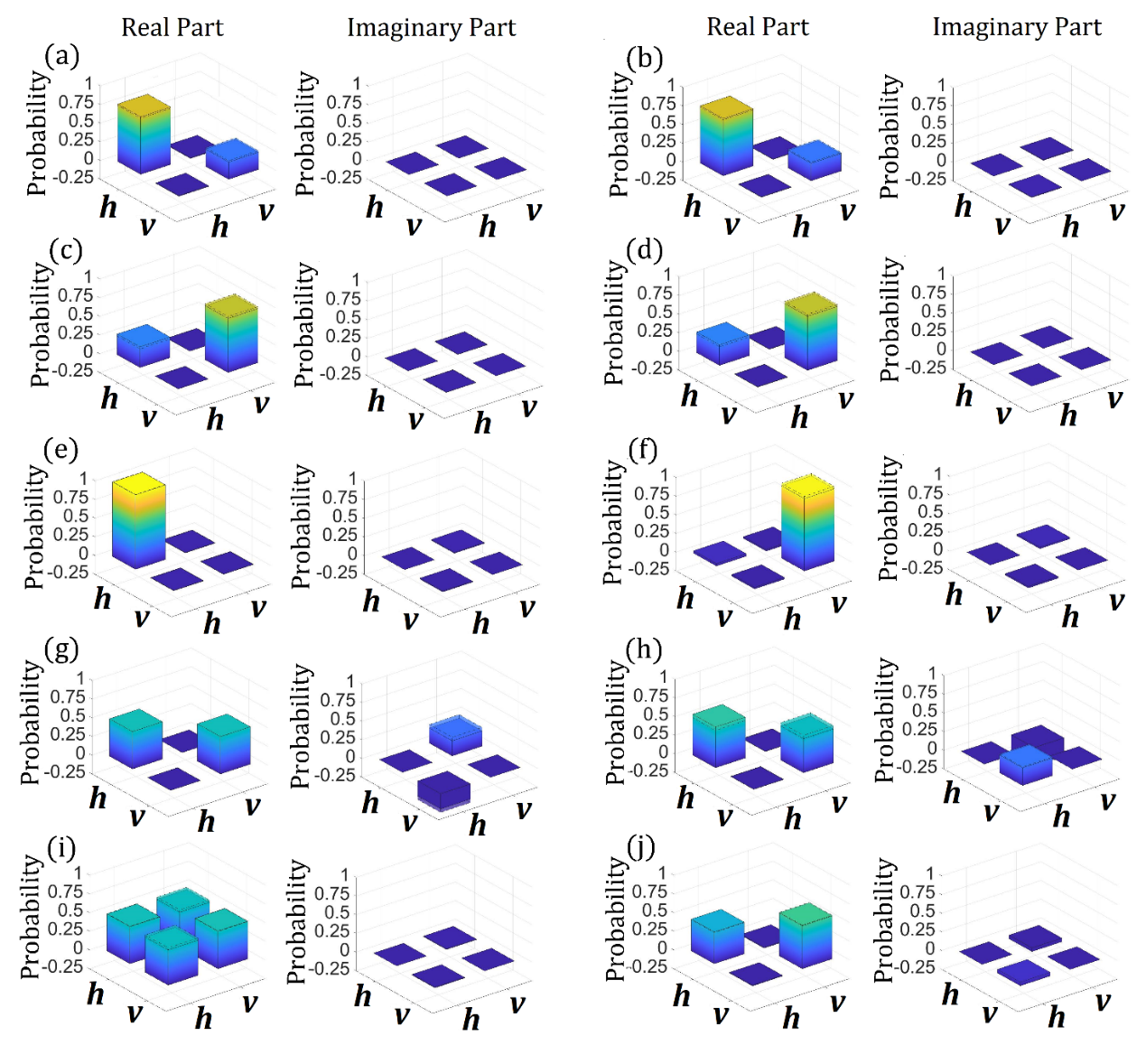 图4.不同输入情形下关联光卷积网络的输出。各子图中左侧为实部结果,右侧为虚部结果。