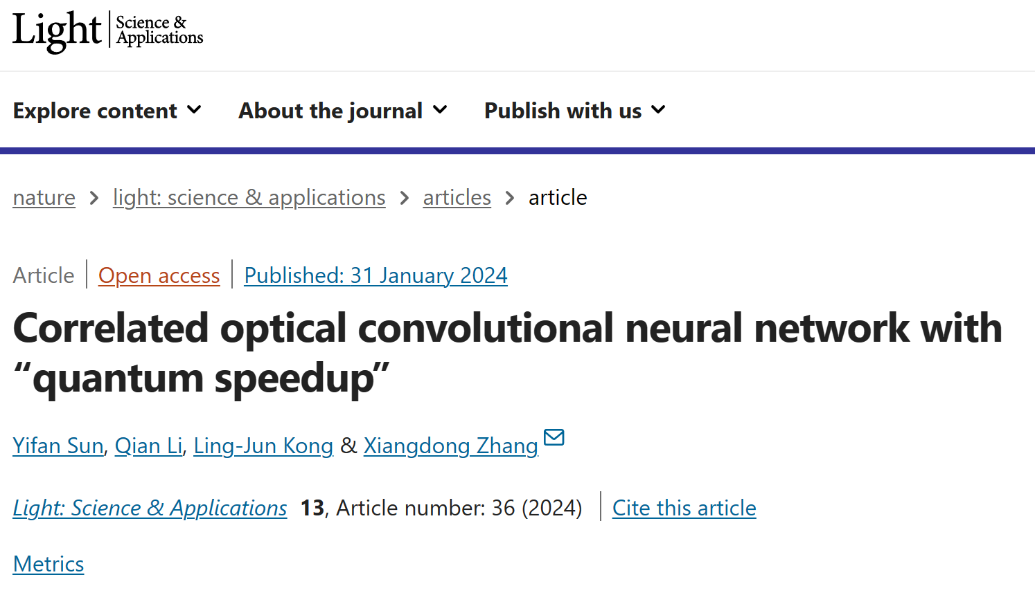 日前,北京理工大学物理学院张向东教授课题组利用经典光的关联特性实现了具有“量子加速”功能光学卷积网络。相关成果以“Correlated Optical Convolutional Neural Network with “Quantum Speedup””为题发表在Light: Science & Applications期刊[Light Sci. Appl. 13, 36 (2024)]上。北京理工大学物理学院孙亦凡副研究员为该论文第一作者,北京理工大学物理学院张向东教授为论文通讯作者,北京理工大学物理学院孔令军研究员、李乾博士也为该工作做出了重要贡献。该研究工作得到了国家自然科学基金委的大力支持。
