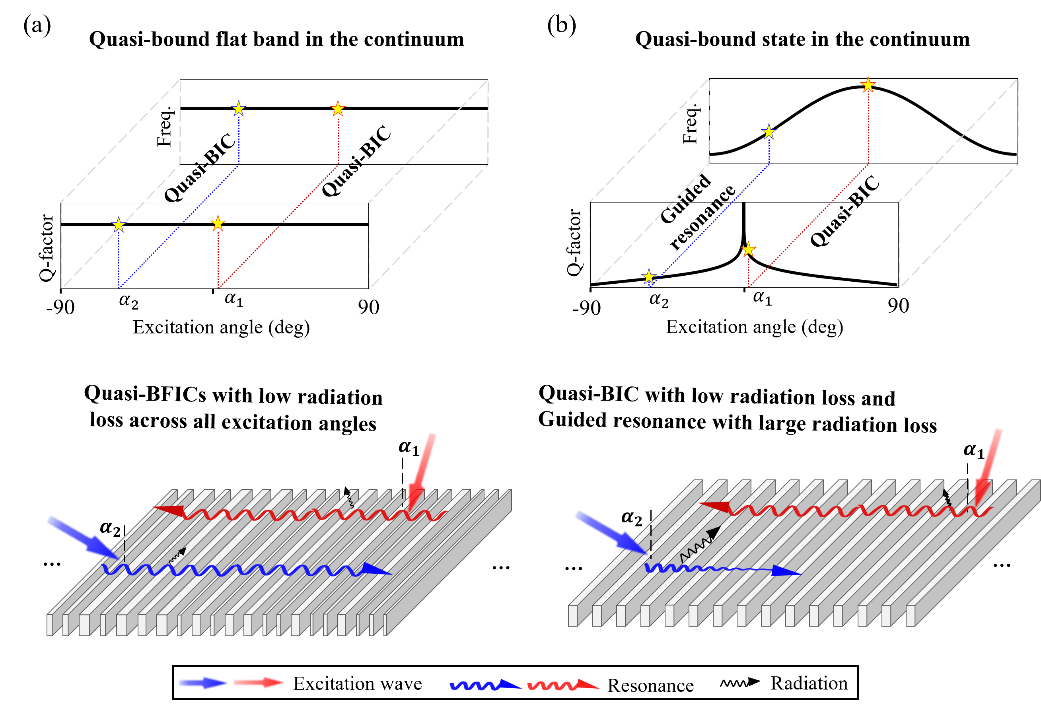 研究亮点之一:提出“光学连续谱准束缚平带”新概念,突破传统准BIC激发角度制约