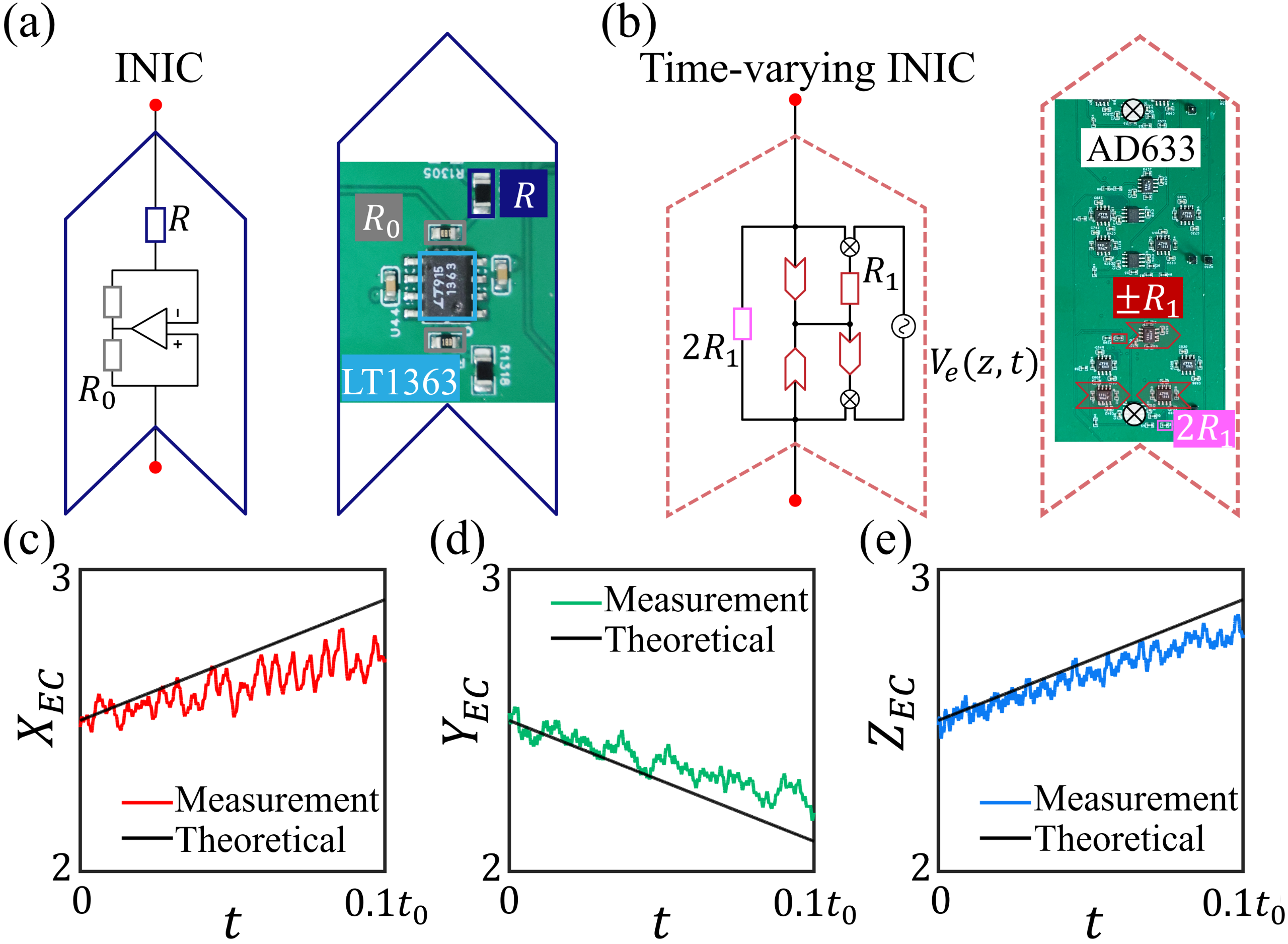 为验证理论预测,研究团队设计并制备了基于时间调制双曲晶格的电路网络(图3a-b),将{8,8}双曲阿贝尔簇映射为具有8个原胞、512节点的电路网络。利用时变非互易电阻单元实现时变耦合。其电路动力学方程与双曲拓扑泵浦的含时薛定谔方程严格等价,使电压演化可用于表征波包动力学。实验测得电压波包的ECOM演化(图3c-e):其沿x,y,z方向的轨迹与六维量子霍尔理论预测定量吻合。受限于电路规模(每原胞64节点),基态能带色散导致实验偏差随演化增大——这与理论中能带平坦度对ECOM量子化影响作用机理一致。