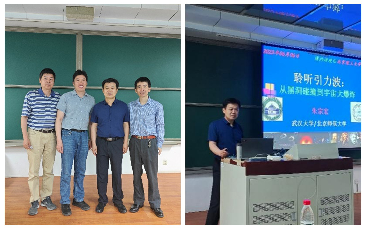 2023年6月6日下午13:30,武汉大学天文系/北京师范大学天文系朱宗宏教授做客物理学院“博约科技讲座”,在理学楼B座2-206教室为师生带来了一场题为《聆听引力波——从黑洞碰撞到宇宙大爆炸》的讲座。物理学院院长助理李军刚、缪劲松等教师以及近百名本科生参加。本次报告由物理学院韦浩主持。