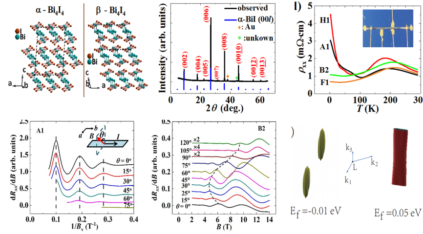 (1)拓扑材料:研究卤族拓扑材料的制备和拓扑特性的分析,目前主要集中于Bi4X4(X=Br,I)材料。通过对其电学、光学、光电等性质的分析,研究拓扑边缘态的基本特征和可能的应用。目前实验室拥有分子束外延设备、磁控溅射设备、热蒸发镀膜设备、原子层沉积系统、PECVD和热化学气相沉积系统等薄膜材料制备设备。相关表征设备有探针台、拉曼光谱和原子力显微镜。公共的低温物性测量仪可以在2-400K温度范围和0-14T磁场下,研究材料的电学、磁学、热电等性质。
