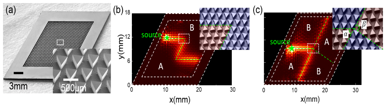 [3]采用微纳加工方法,利用弹性波实现了谷态传输,为弹性波操控提供了新的途径和方法。Nature Materials, 17, 993 (2018)