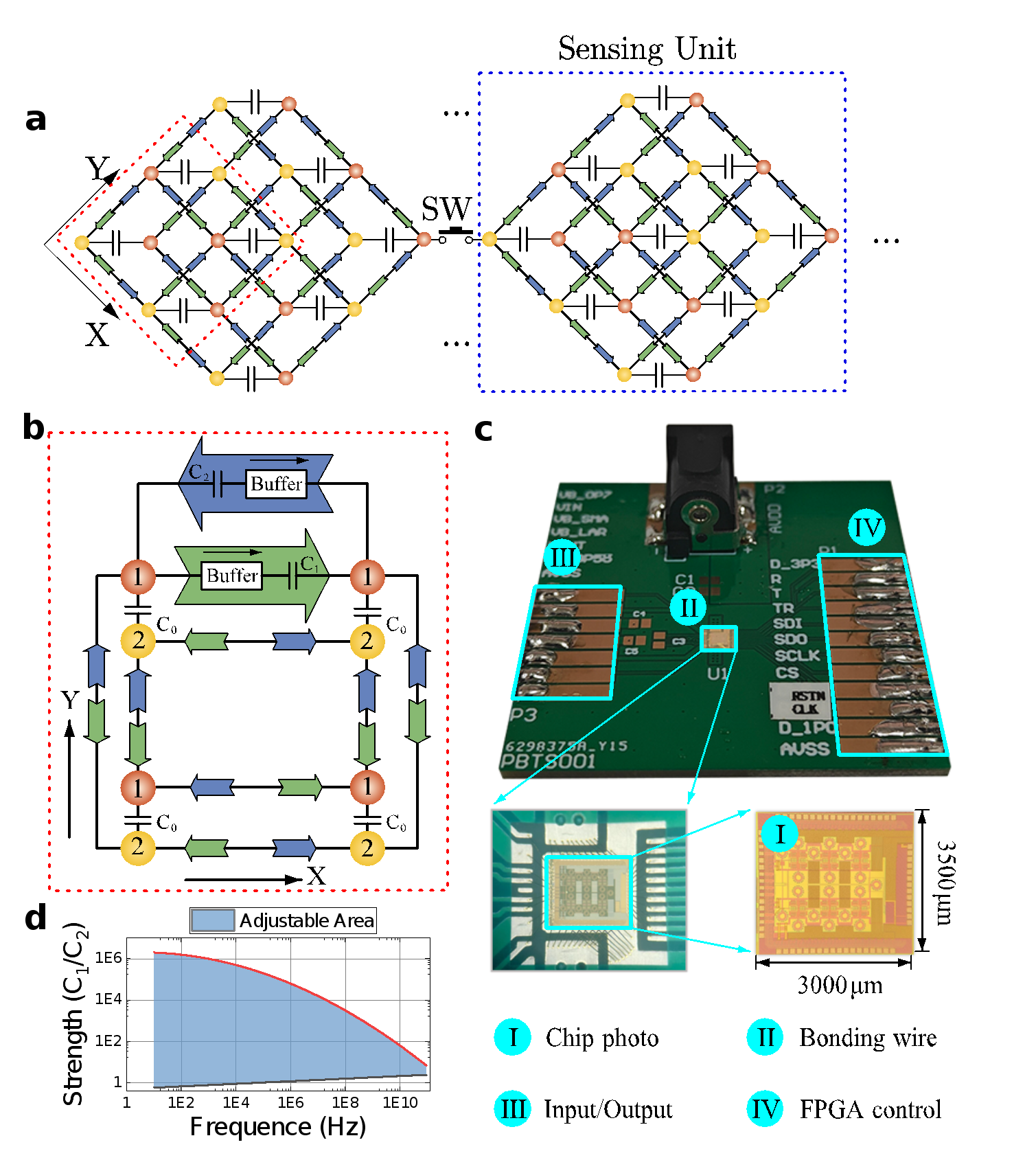 (10)基于非厄米经典电路首次观察到了杂化高阶趋肤-拓扑效应(Nat. Commun.12, 7201); 提出了一种基于高阶非厄米趋肤效应的量子传感器, 进一步,利用65nm互补金属氧化物半导体(CMOS)工艺制备出了对应的集成电路传感芯片,证明了其对极弱信号的优良检测能力(Sci. Adv.10, eadp6905)。