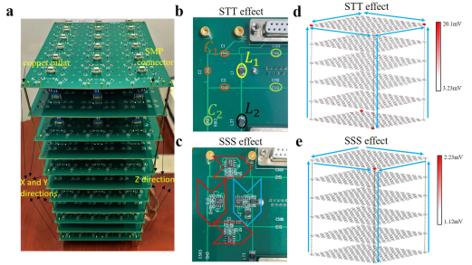 图:三维趋肤-拓扑效应实验样品图和能量分布图