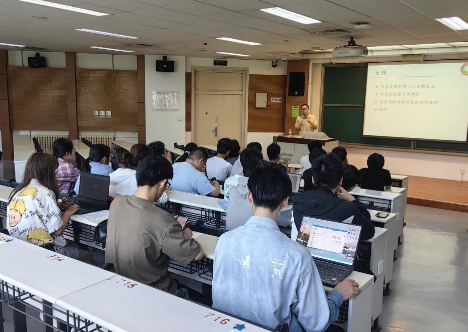 本次活动吸引了来自特立书院英才班、强基班、求是书院2023级本科生30余人参与。活动邀请到了物理学院副教授、博士生导师陈天老师就其目前所研究的量子行走的物态调控及算法研究领域进行了详细介绍及实物演示。