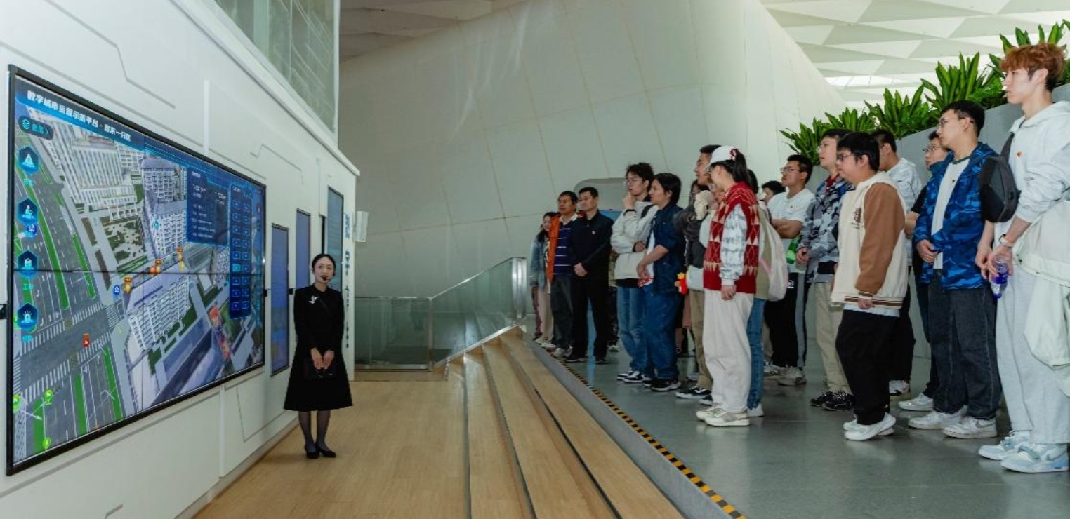 在雄安城市计算中心和雄安规划展示中心,工作人员向师生党员们介绍了雄安新区在数字建设与整体规划方面的成果与蓝图。在沉浸式展示大屏前,师生党员们了解了如何通过先进的云计算技术和高效能服务器为智慧城市应用场景赋能,从多维度、多视角全面领略了这座未来之城的规划布局。