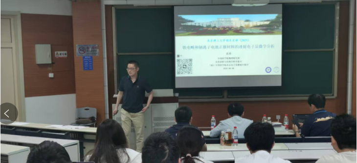 沈希研究员为同学们带来了题为:“铁电畴和钠离子电池正极材料的透射电子显微学分析”的精彩报告。介绍了使用透射电镜原位电学方法研究铁电畴和钠离子电池正极材料方面的工作。从前沿视角给同学们分享了样品-试验制备-表征过程中,如何找问题并解决问题的经验。作为北理工物理学院的优秀校友,他还给同学们分享了他当年选择研究方向的亲身经历。