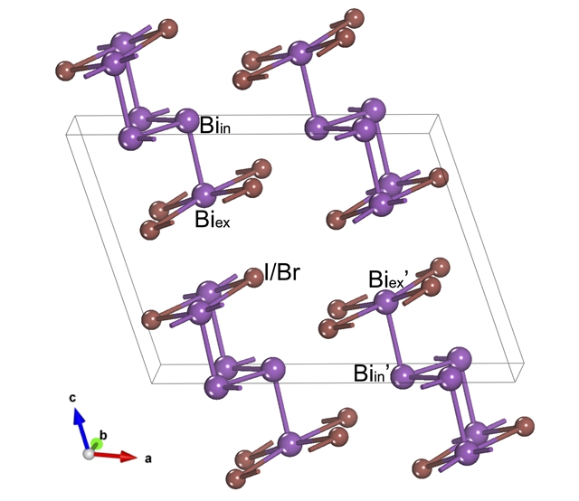 图1 beta-Bi4X4(X=Br,I)的晶体结构。体系关于(010)面具有镜面反演同时具有空间反演对称性。